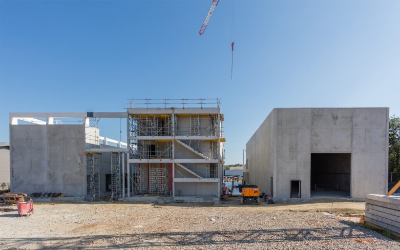 Chantier en cours pour le Groupement de Postes de Marsillon à Billère (64). Les bâtiments de bureaux et d’entrepôt sont désormais en place. La pose du bardage bois massif est prévue dans les prochaines semaines. Ce projet, essentiel pour la maintenance des postes haute et très haute tension et la surveillance du réseau, poursuit sa progression vers la mise en service.