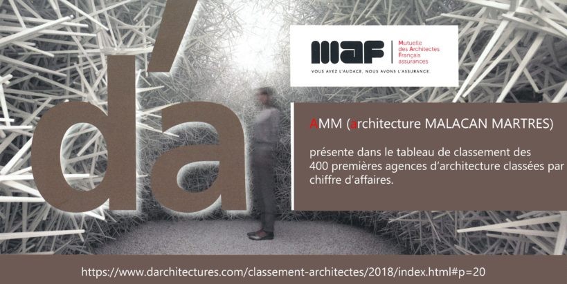 AMM (architecture MALACAN MARTRES) présente dans le tableau de classement des 400 premières agences d’architecture classées par chiffre d’affaires.
