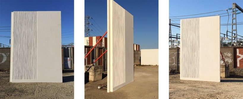 Livraison du prototype pour la future clôture du poste source de Colomiers Ramassiers : mur de 4,00m de haut en béton blanc matricé