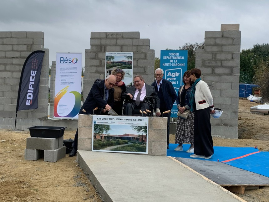 Le 25 octobre 2024, nous avons célébré le lancement de la réhabilitation et de l'extension du Foyer d'Accueil Spécialisé (FAS) Ernest Boué à Pechbonnieu en présence d’Alain Gabrieli, Conseiller Départemental, Vice-Président du Conseil Départemental de la Haute-Garonne en charge des Personnes âgées, des Personnes handicapées et de l’Accès aux soins, Gérard Blanc, Président de l’Association Réso et Christèle Cammas, Directrice générale de l’Association Réso.